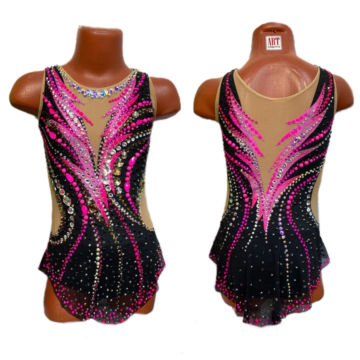 Купальник для худож. Гимнастики р.32 рост 128-134 артикул 10617 Черный с неоновым розовым