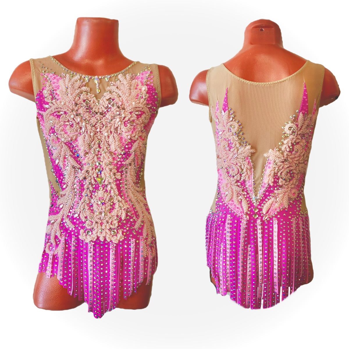 Купальник для худож. Гимнастики р.34 рост 134-140 артикул 10246 розовый с кружевом Премиум
