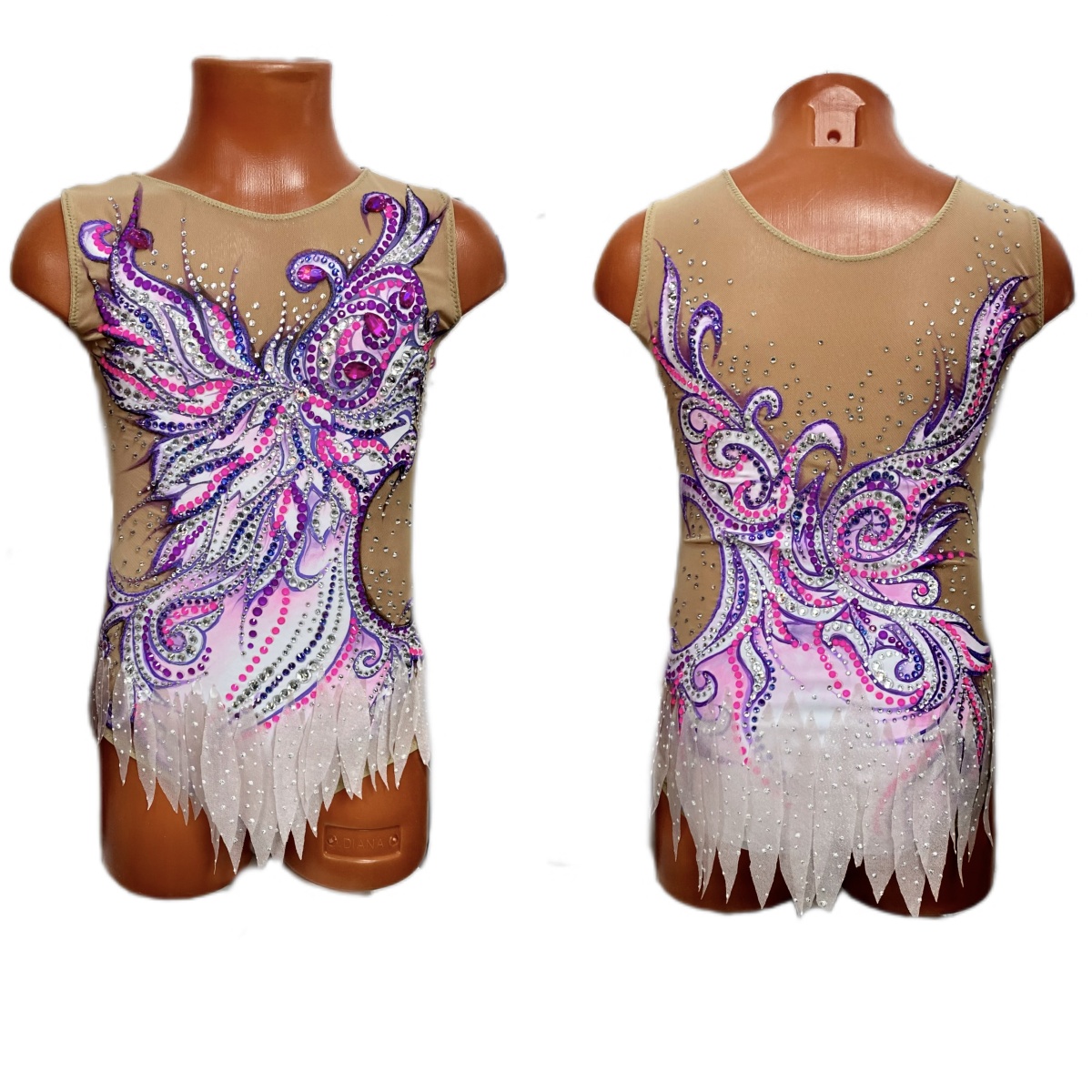 Купальник для худож. Гимнастики р.36 рост 140-146  артикул 10232 бело розовый сиреневый