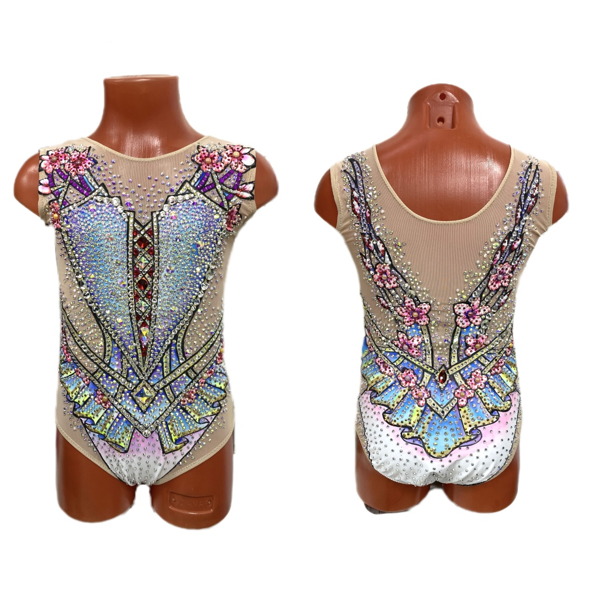 Купальник для худож. Гимнастики р.36 рост 140-146 артикул 10411 Бело-голубо-розовый